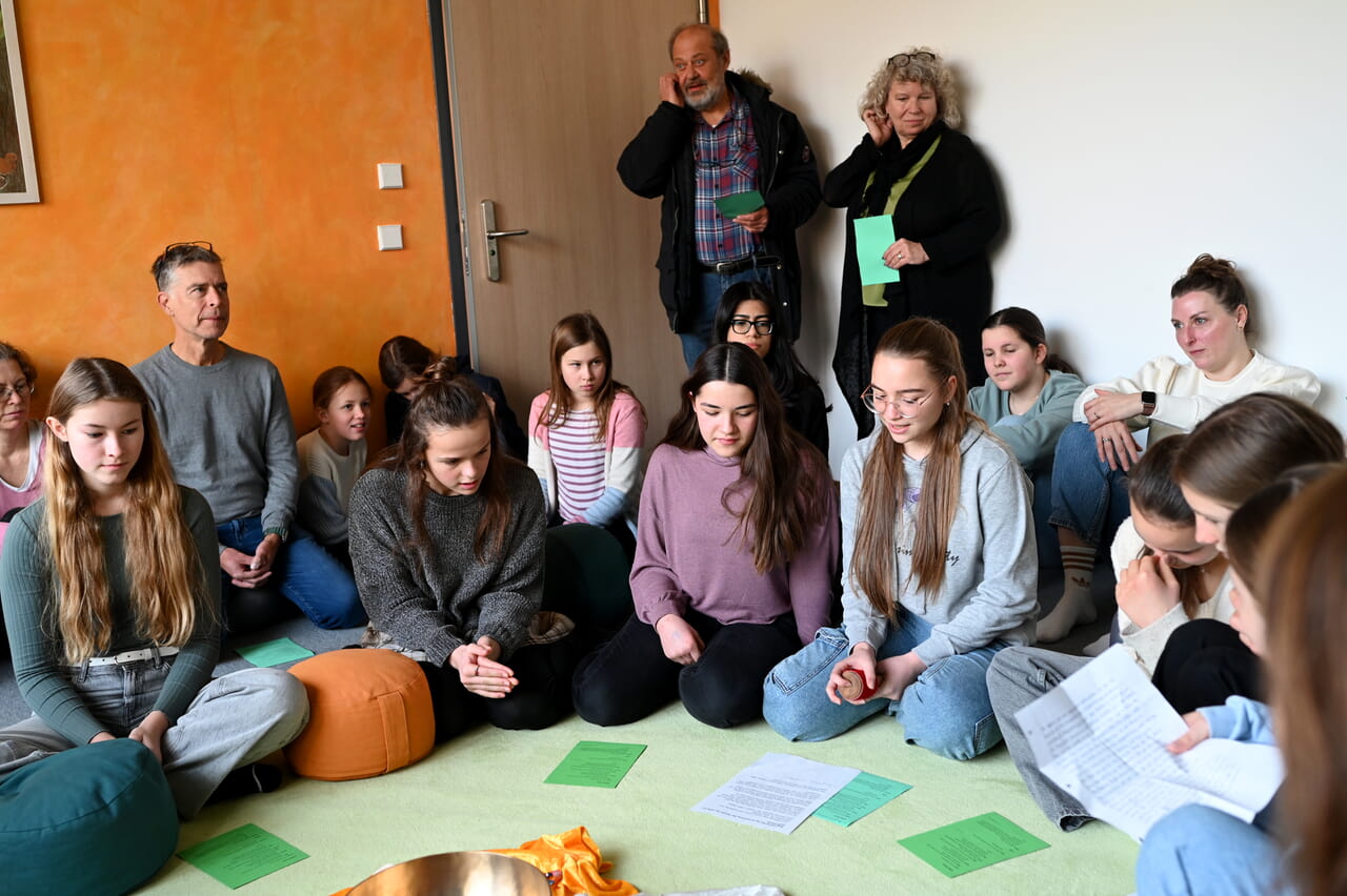 Der „Raum der Stille“ wird am vergangenen Dienstag mit einer Andacht eingeweiht. Die Schüler und alle Verantwortlichen, die an der Gestaltung dieses Raumes mitgewirkt haben, sitzen auf dem flauschigen Teppichboden und auf Kissen. In der Mitte des Kreises eine Klangschale und Elektrokerzen. Ein freudiges Aufatmen geht gefühlt durch den Raum. Ganz nach dem Motto: Endlich ist es vollbracht.