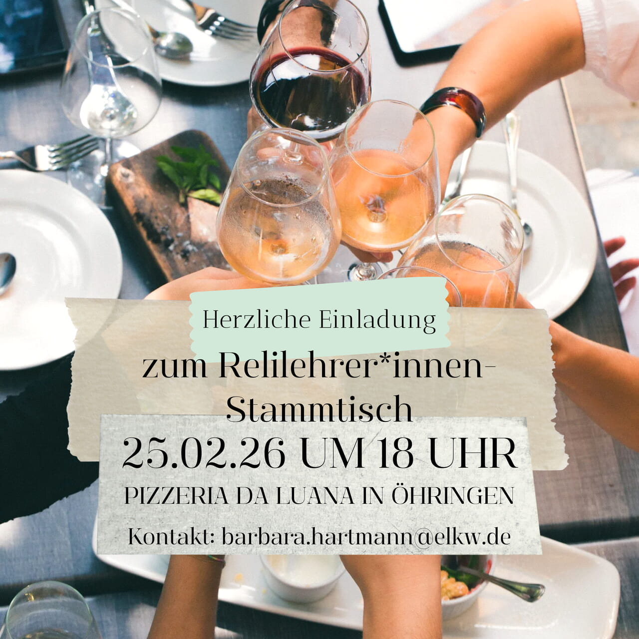 Im Schulalltag bleibt der Austausch oft auf der Strecke. Das wollen wir ändern. Wir laden dich herzlich ein zu unserem Stammtisch für Religionslehrerinnen und -lehrer ein. Kein Protokoll, keine Tagesordnung – einfach nur gute Gespräche, Vernetzung, Pizza und ein kühles Getränk.